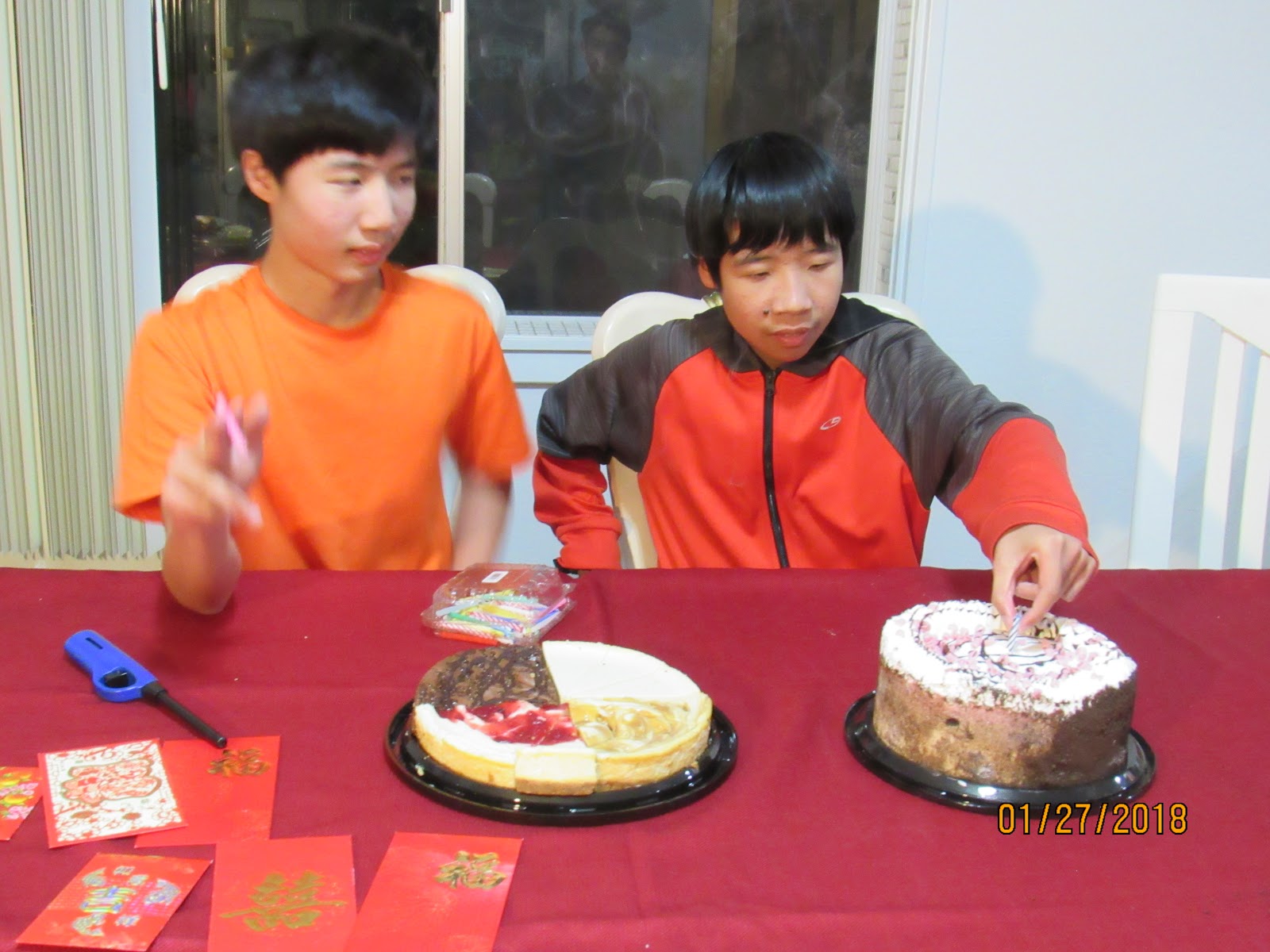 JF 一家傍晚從Elk Grove來,主日教會有事,所以晚上還要趕回去,聊完環保鞋,大家就進入吃蛋糕送禮物環節。伯伯伯母送外套,其他人是送紅包。